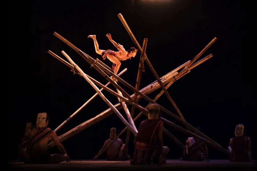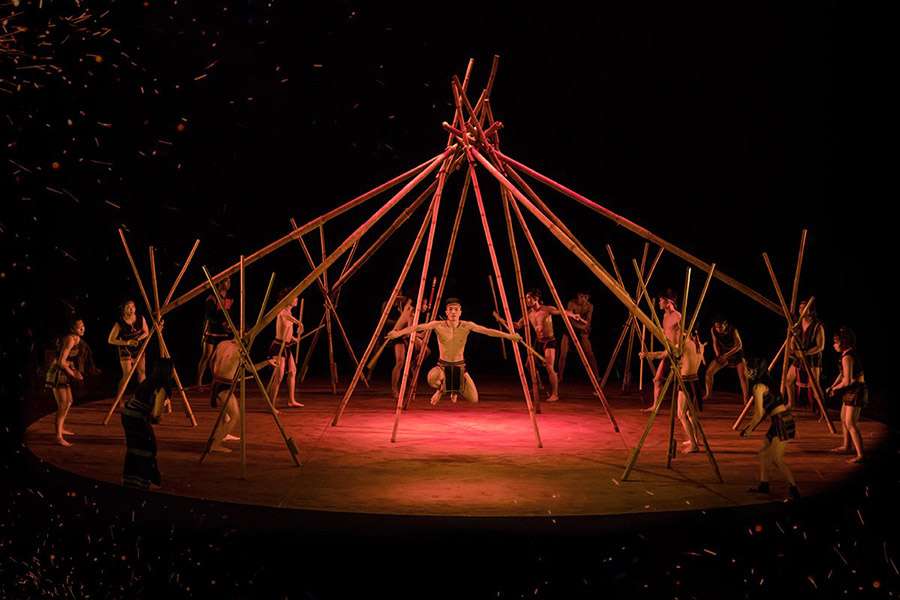 Like traditional plays (My Village or A O show), Teh Dar is a performing art combining circus, balance, acrobatics, juggling and contemporary dance. Players will perform with live music. The artists use around 20 types of folk instruments from the Central Highlands people, such as Bhana, E De, K’ho and Giarai. The list includes gongs, drums, kipa, ding nam, to rung, tu va and other traditional musical instruments, which are original artifacts of the Central Highlands.