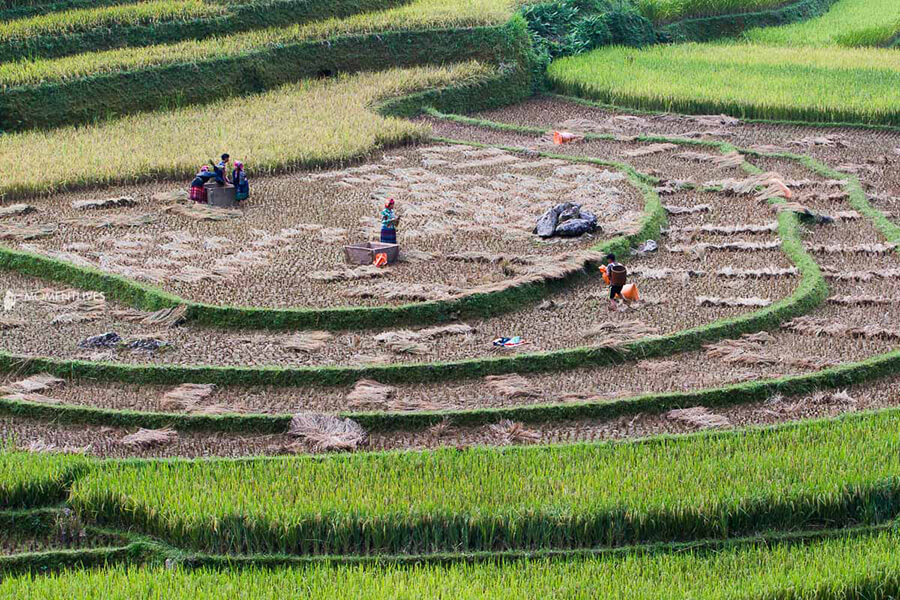 Enjoy the picnic lunch. Continue our trip to Lung Cai on the concrete road then turn off on a single track leading to Lung Phin Village to stay overnight.