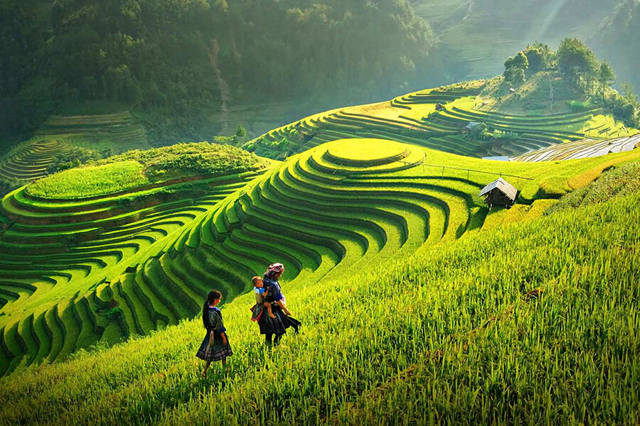Have breakfast in the hotel in Hotel, we depart early to Muong Khuong Sunday Market. Muong Khuong is the frontier district of Lao Cai province, which adjusts to Yunnan Province. Muong Khuong is known as the home of 14 different hill-tribe peoples, and the major is the H’mong people. Additionally, you have a chance to capture fascinating landscapes and colorful people on the way to the market. Continue to the cycling tour, we kick off our pedal to villages, you can cycle leisurely around the village and have a chance to talk with local people and take pictures with kids.