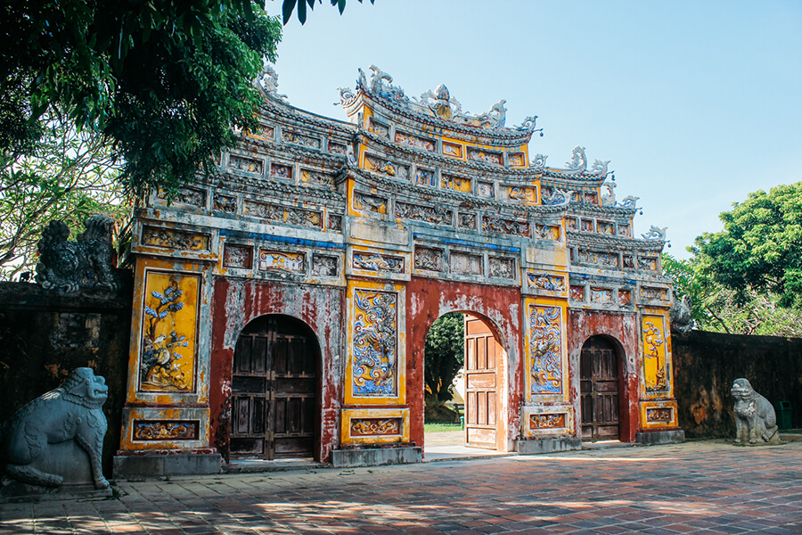 At lunchtime, we will be served a special vegetarian meal in a local restaurant. Then, have a short rest and continue our trip with the 2 famous sites of Hue which are the Imperial Citadel and Forbidden City. Here, get deeper insights into a part of the Vietnam Feudalism Period by listening to stories about the Kings, their families, their dynasties, etc. Besides enjoying pleasant Hue traditional music performances, we can pretend to be Nguyen’s King and Queen by renting traditional costumes. End our trip by walking around Dong Ba Market. Overnight in Hue.