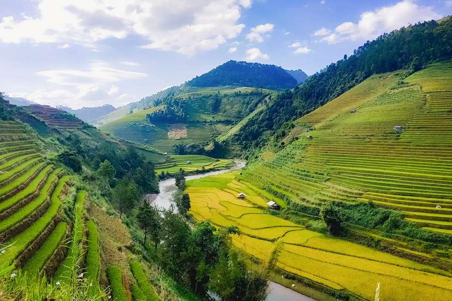 The terraces widely exist in the Mu Cang Chai plateau but the big sites of terraced fields(villages) in Mu Cang Chai we visit are above 3, and “La Pan Tan terraced” is the biggest and most beautiful terraced field in Mu Cang Chai.