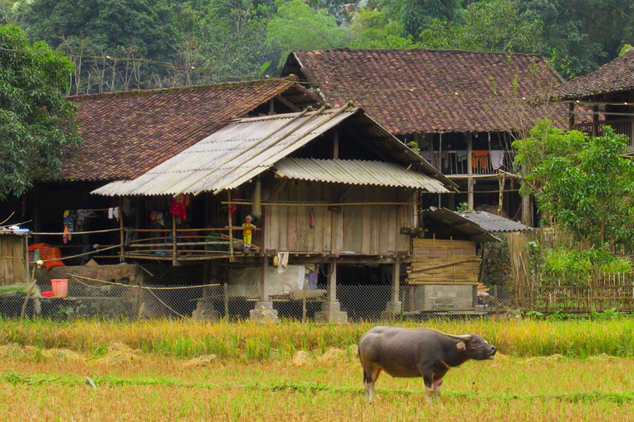 After taking a short rest, we visit Ban Lake before driving about 8km from Lac Village to Cum Village. From here, trekking through villages and the foot of mountains, we will see the habitation of Thai people for over a thousand years. Next, we walk to Mai Hich Village within 2 hours to marvel at a majestic view of mountains and the wide cultivated valley of rice and vegetables. At noon, we check into a wooden house of stilts and then prepare dinner with the help of localhost. Enjoy our meal while having an informal talk with all members of the family. Overnight in Mai Hich home-stay.