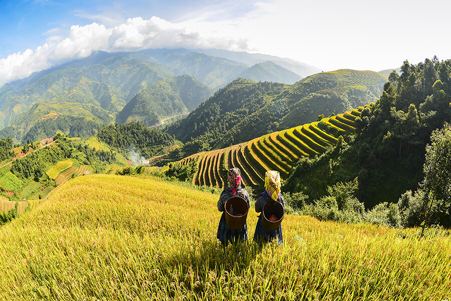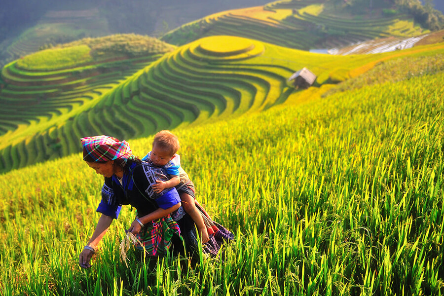 Leave Nghia Lo this morning, we take a scenic drive to Mu Cang Chai. To get to this town, we have to drive through Khau Pha Pass known as one of the four largest passes of the Northwest where we can experience the mighty landscape of mountains, forests, and enormous paddy fields. Besides, on the road, our driver will stop the car at Tu Le Village to let us rest, walk around and enjoy the scenery. Then, continue the trip with a visit to the H’mong village of Nga Ba Khin before driving more than 7km to set foot on another H’ mong village of La Pan Tan. Arrive at Mu Cang Chai in the early afternoon.