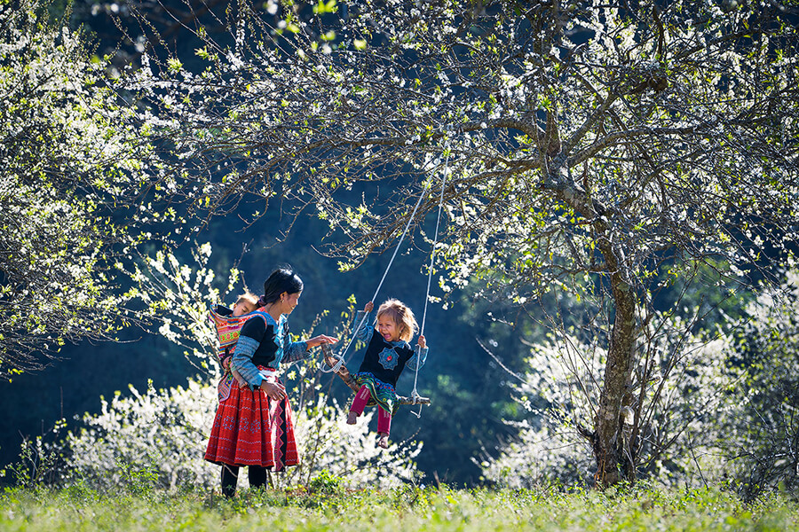 We can find various types of products and easily buy a unique souvenirs like brocade or silver items for ourselves. Transfer to Ban Pho Village – a small village of Nung and Flower H’ mong people where they grow many vegetables and fruit trees, especially plums. Stroll around and witness their daily life of them before visiting a local house and tasting a kind of ethnic alcohol named corn alcohol. In the late afternoon, back to the town and check into our hotel. Overnight in Bac Ha.